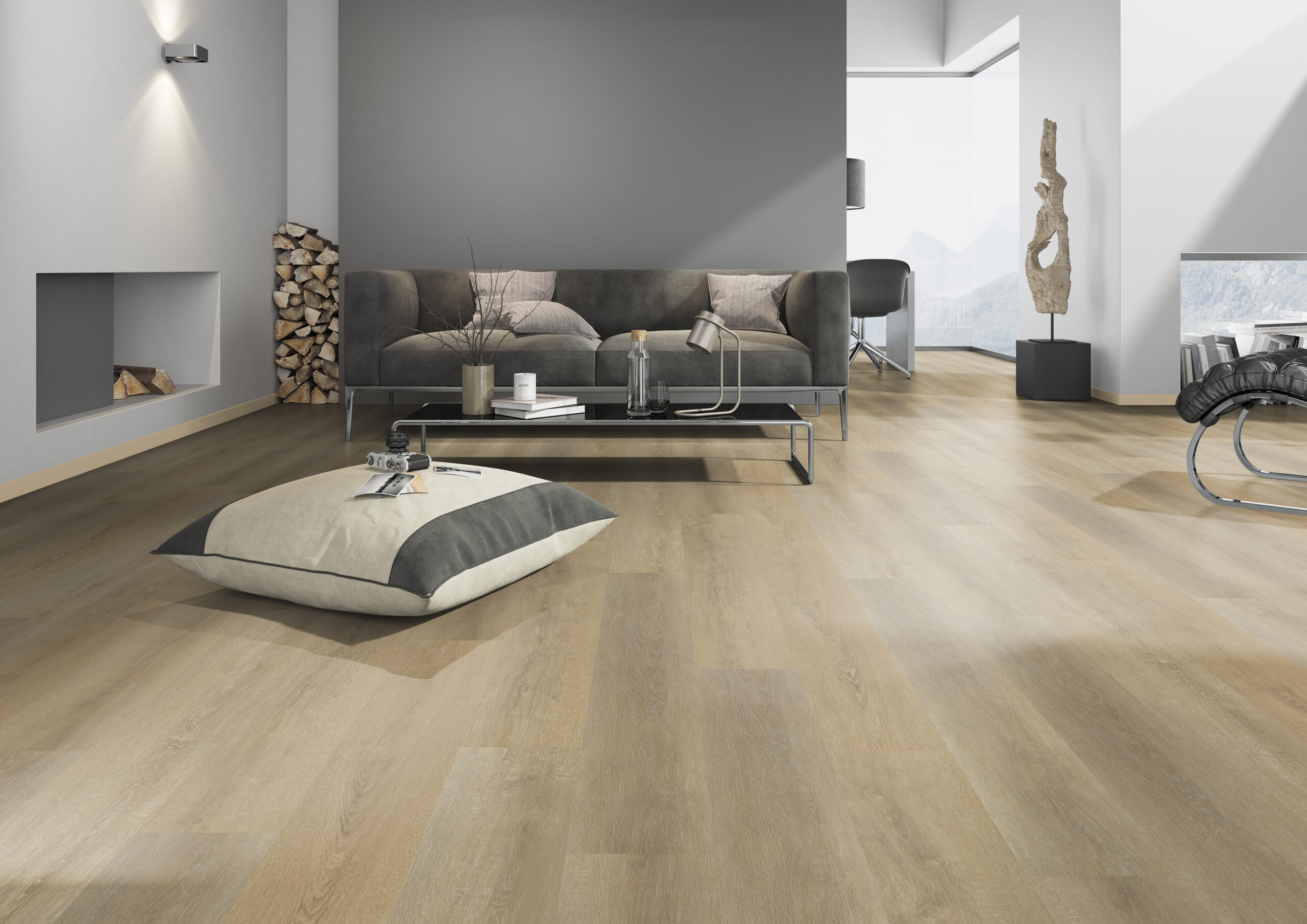 CLICK Sistemos Vinilas Su Paklotu - Sawcut Oak Natural